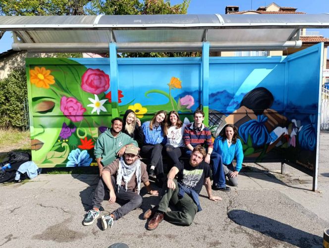 Една обикновена спирка на градския транспорт в столичния квартал „Модерно предградие“ се превърна в произведение на изкуството благодарение на нашия международен доброволчески екип „Цветове на солидарността 2“. Инициативата е част от проект по програмата „Европейски корпус за солидарност“, реализиран от нашата фондация „Ценности, добродетели, интегритет“.